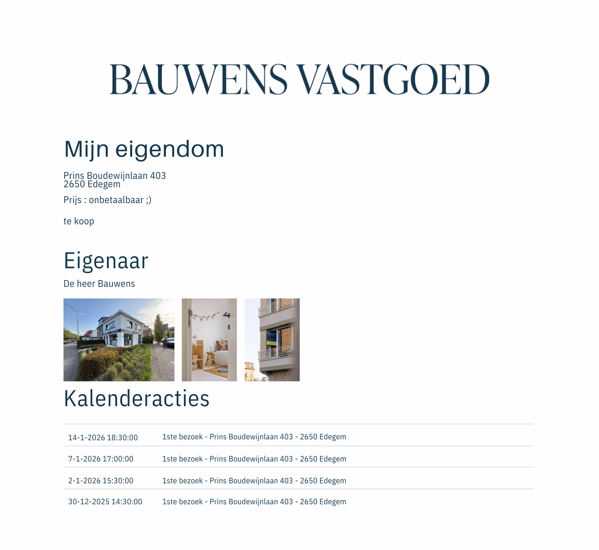 Via ons klantenportaal volg je de verkoop eenvoudig op. Afspraken, updates en documenten staan netjes gebundeld op één plek. Zo zie je in één oogopslag wat er gebeurt en blijf je rustig en goed geïnformeerd doorheen het hele traject.