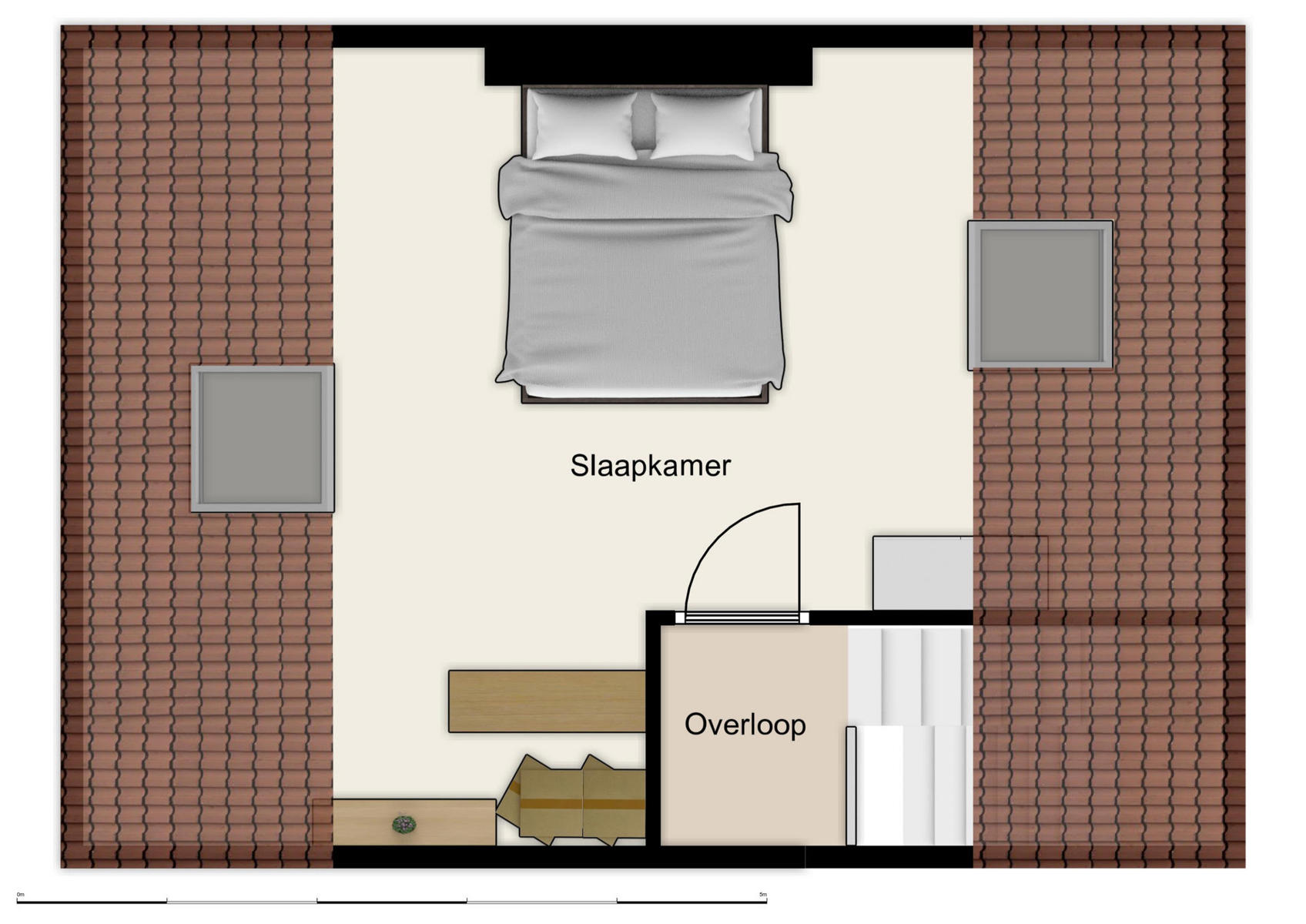 Op de eerste verdieping zijn er 2 ruime slaapkamers (14m2 en 13m2) en een dressing. Op de tweede verdieping is een master bedroom (30m2) onder het schuine dak (met 2 dakramen).
