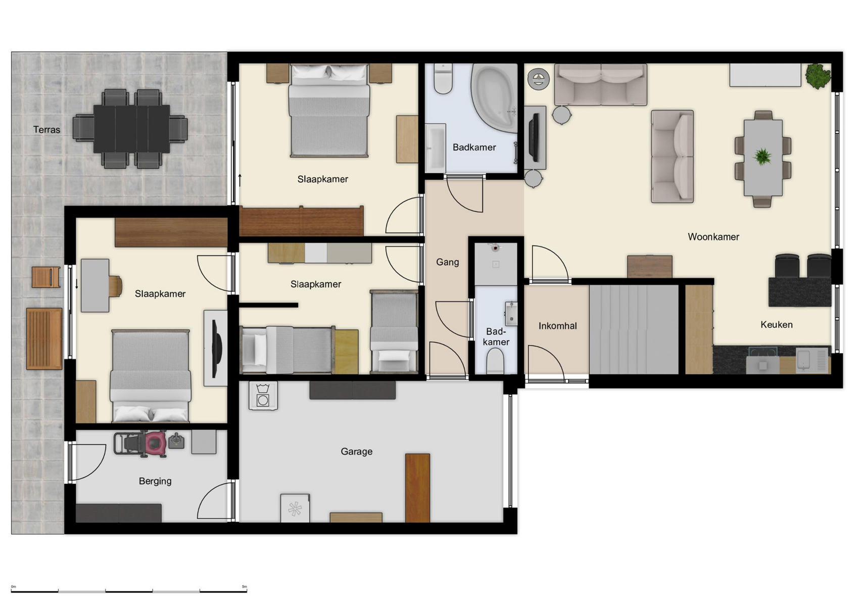 Tot slot betreden we via de nachthal de garage (16m²) met wasplaats, aansluitend een tuinberging (7m²) met toegang tot de tuin.
