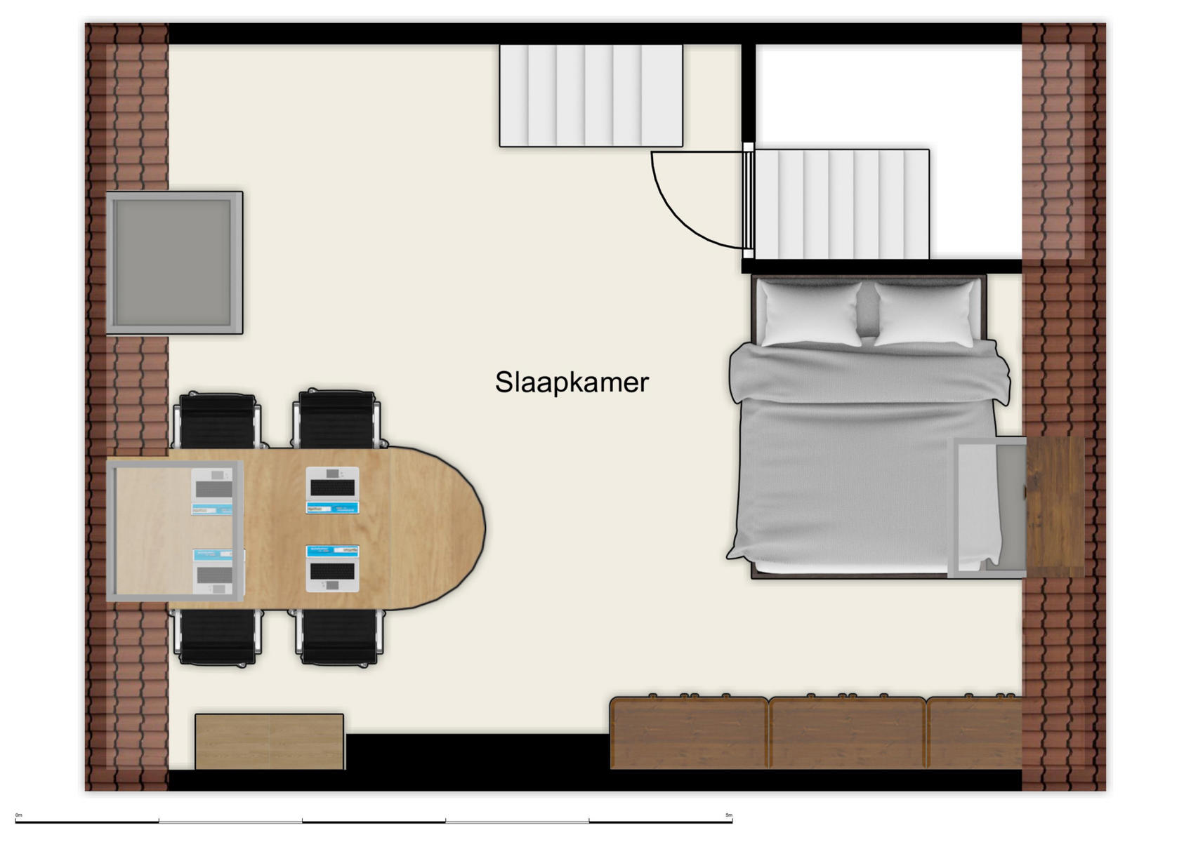 Op de tweede verdieping onder het schuine dak bevinden zich de 3de slaapkamer met bureauruimte (39 m2), ingemaakte kasten en trap naar extra zolderruimte.