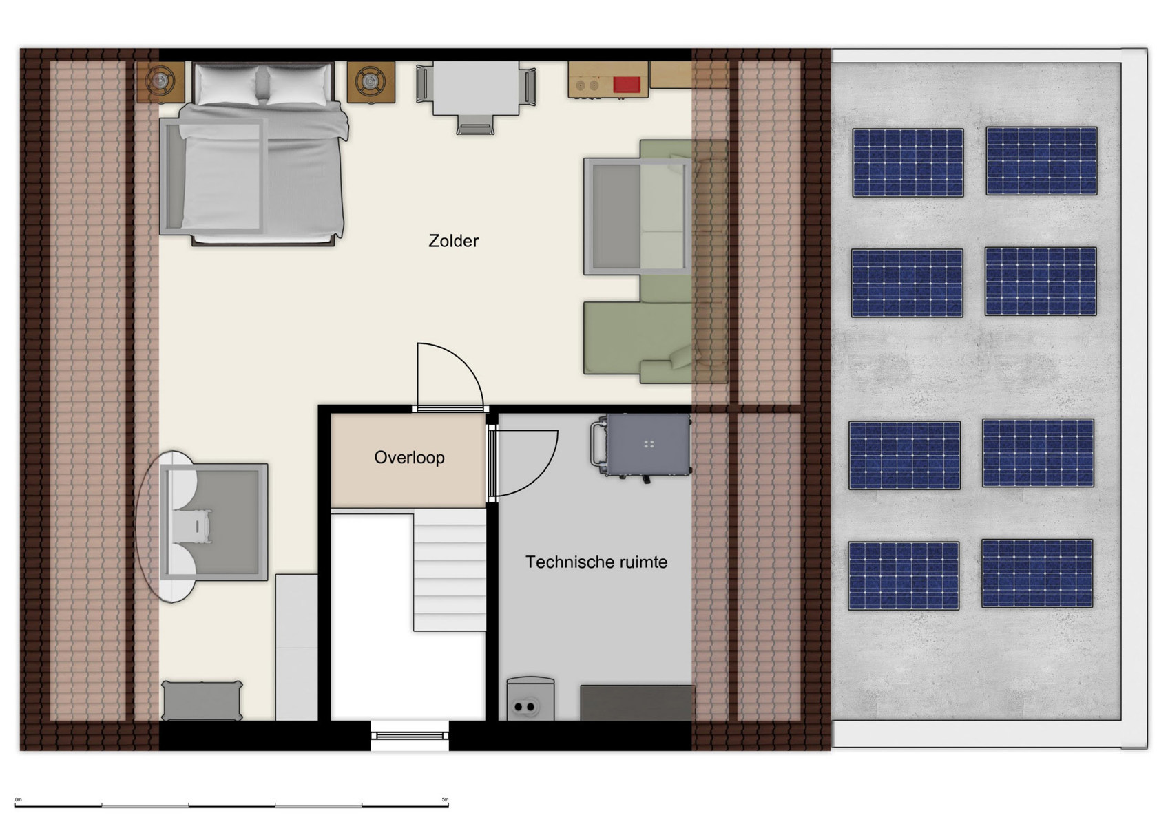 + Installatie met PV-panelen: 4,96Wp vermogen met omvormer 3.0kW.